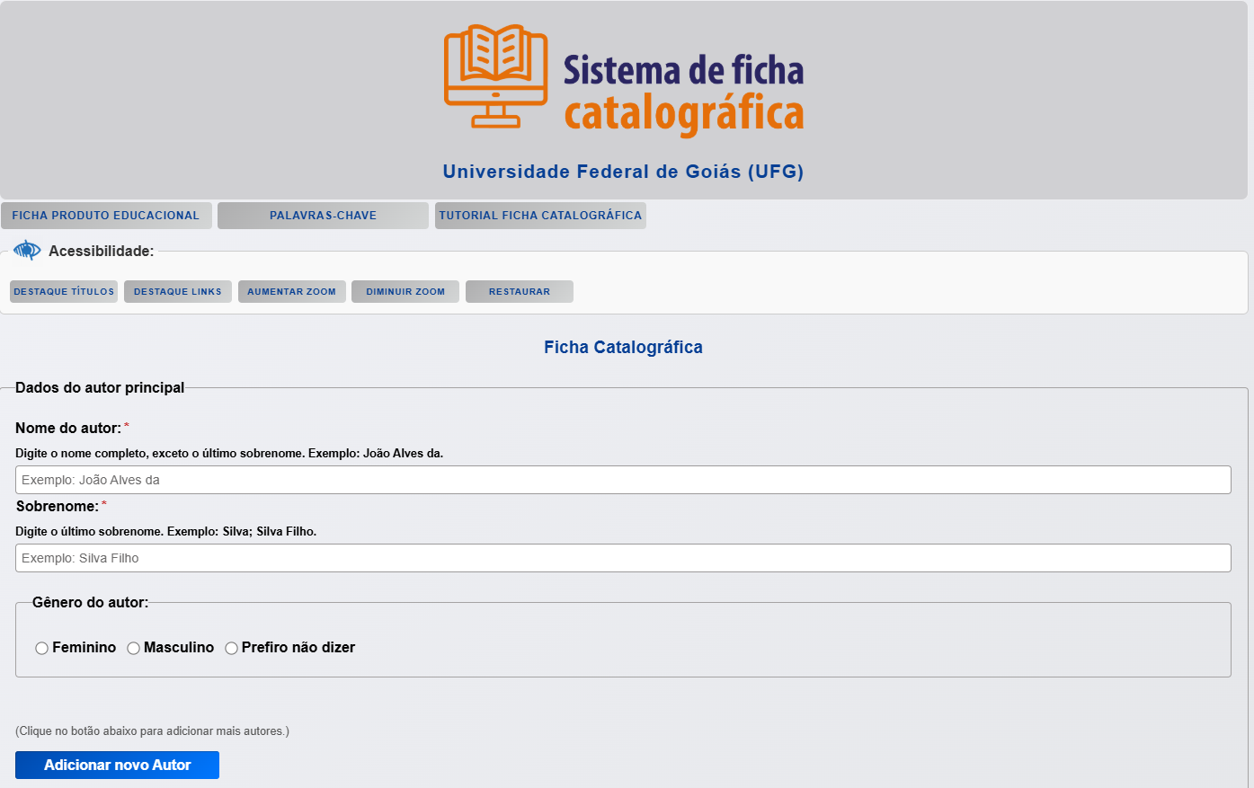 O Sistema de Bibliotecas da Universidade Federal de Goiás (Sibi/UFG) disponibiliza a versão atualizada da ficha catalográfica, com adequações às normas vigentes e orientações que visam facilitar a elaboração e a padronização dos trabalhos acadêmicos produzidos na instituição.